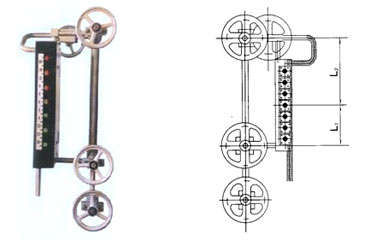 型號 水位計方向 工作壓力 MPa 工作溫度 ℃ 中心距 mm L1(mm) L2(mm) 可視范圍 觀察窗口數 聯接方式